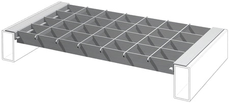 Unser Logiserv24 Gitterrostboden EPAL bietet eine hochwertige, langlebige Lösung für Ihr Lagersystem. Ob Paletten, Gitterboxen oder Sondergestelle - dieser Einlegerost eignet sich für Ladungsträger und Palettenregale aller Art. Er nimmt sowohl gleichmäßige als auch punktuelle Belastungen problemlos auf. Dank der Einhängeprofile wird dieser Gitterrostboden zwischen den Traversen versenkt, sodass die Fachhöhe weiterhin voll ausgenutzt werden kann. Schnell und einfach montiert, reduziert er zudem das Beschädigungsrisiko.